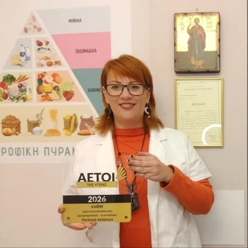 Το ΕΥDIET είναι ένα ιδιωτικό Διαιτολογικό Γραφείο με ζεστό και φωτεινό περιβάλλον στο Εμπορικό Κέντρο της Νίκαιας (κοντά στο μετρό Νίκαια). Επιστημονική υπεύθυνη είναι η Διατροφολόγος - Διαιτολόγος Ιωάννα Δουδουλακάκη, απόφοιτη του Μεσογειακού Πανεπιστημίου Διατροφής και Διαιτολογίας Κρήτης έχοντας λάβει 2 κρατικές υποτροφίες και πρόσφατα το βραβείο «ΟΙ ΑΕΤΟΙ ΤΗΣ ΥΓΕΙΑΣ 2026» ανάμεσα σε 89.000 διαιτολογικά γραφεία σε όλη την Ελλάδα. Οι Μεταπτυχιακές σπουδές της αφορούν τη Συναισθηματική Παχυσαρκία, τις Διατροφικές Διαταραχές, τη Παιδική - Εφηβική Παχυσαρκία και τη Ψυχοσωματική Ιατρική. Διαθέτει πολυετή εμπειρία, έχοντας εργαστεί ως επιστημονική συνεργάτης στη Μονάδα Υπέρτασης και Λιπιδίων του Γενικού Νοσοκομείου Αθηνών «Ιπποκράτειο», σε επιστημονικές μελέτες έρευνες (π.χ. για την εζετιμίμπη, τις στατίνες και τις β-γλυκάνες), σε ιδιωτικά κλινικά ιατρεία και κέντρα αισθητικής. Επίσης ήταν υπεύθυνη Διατροφής στην ομάδα βόλεϊ της Δραπετσώνας και πραγματοποιεί ομιλίες σε σχολεία. Αγαπά πολύ αυτό που κάνει δίνοντας στοργή και ιδιαίτερη προσοχή σε κάθε διαιτόμενο / ασθενή που αναλαμβάνει. Σήμερα συνεργάζεται και ως υπεύθυνη Διατροφής με το Αθλητικό Κέντρο Π. Φαλήρου υπό την αιγίδα του Ολυμπιονίκη στο άλμα επί κοντώ.