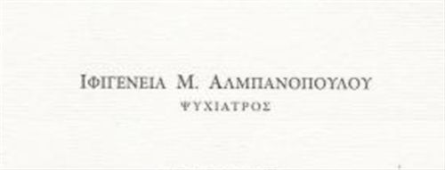 • ΑΛΜΠΑΝΟΠΟΥΛΟΥ ΙΦΙΓΕΝΕΙΑ, ΨΥΧΙΑΤΡΟΣ